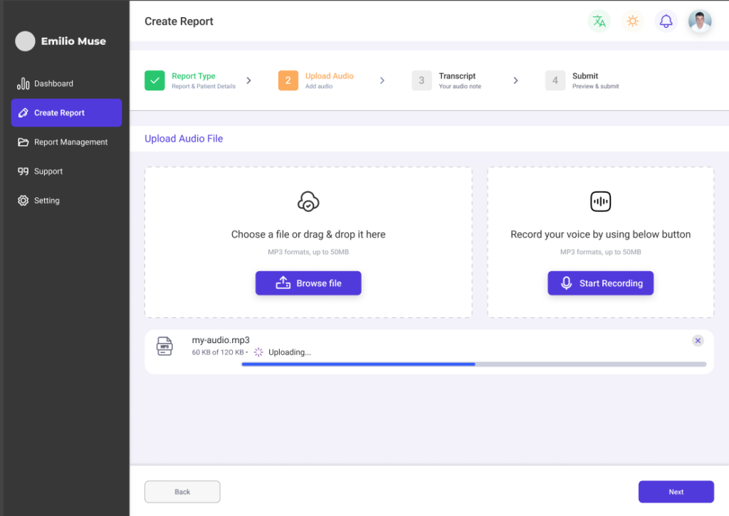 One of the main technical challenges in this project is formatting the transcribed content and identifying the key medical findings. Users typically upload audio recordings describing health issues, which are then converted into text using speech-to-text technology. However, the difficult part is not just transcribing the audio—it’s pulling out the important details (like key findings and parameters) and organizing them into a structured format. This structured data needs to match specific placeholders on the frontend so the final report is clear, well-organized, and easy to read.