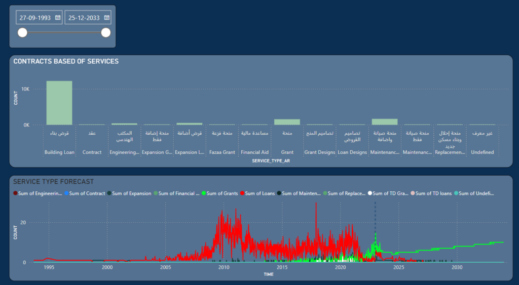 - Prophet: Chosen for its high accuracy in time-series forecasting, especially with weekly, monthly, and yearly intervals. It was used to predict trends in land grant applications and service demands based on historical data.