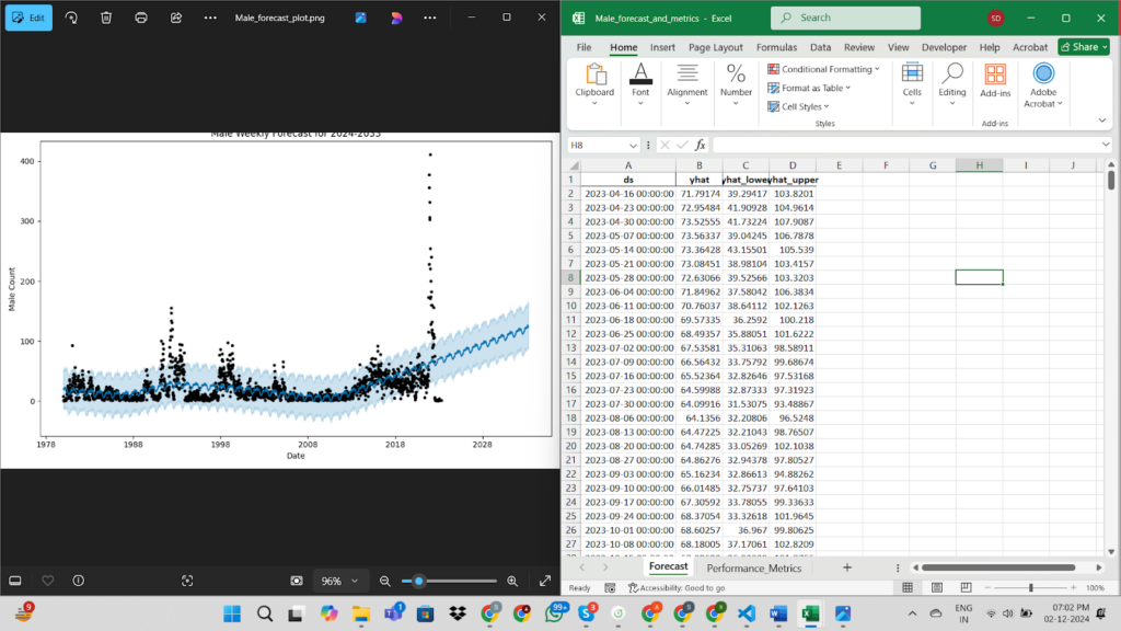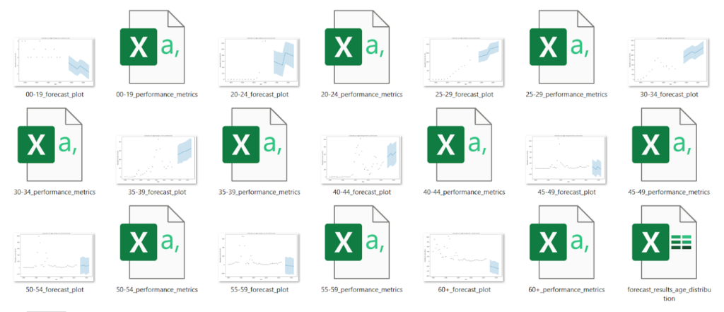 - Segmentation and Aggregation: The forecasting models were refined by segmenting the data into more granular groups (e.g., by age group, marital status) and aggregating trends over different time frequencies (weekly, monthly, yearly). This improved the model’s ability to forecast trends more accurately.