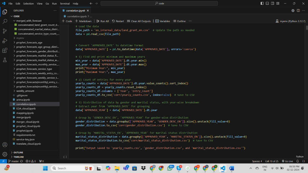 - Implemented and tested time-series forecasting models (ARIMA and Prophet) to predict future trends in land grant applications and service demands.